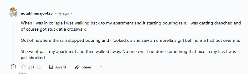 He really stands out in my memory. Almost ten people walked by and minded their own business while I was on the ground, but he came up and helped. I really hope he’s doing okay.