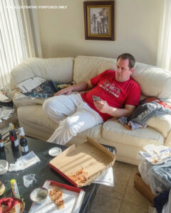 The salesman took a deep breath, cleared his throat, and took a large glass of water.