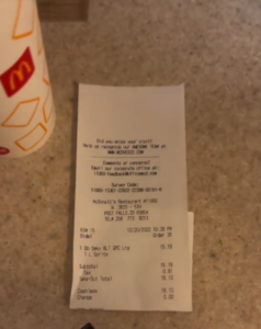 Just a few years ago, a similar meal would have typically cost no more than $10, if not less. So, Christopher was taken aback when he saw his receipt, revealing a hefty $16.10 charge for his meal.