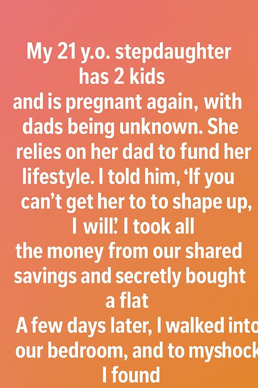 My 21 y.o. stepdaughter has 2 kids and is pregnant again, with dads being unknown. She relies on her dad to fund her lifestyle. I told him, ‘If you can’t get her to shape up, I will.’ I took all the money from our shared savings and secretly bought a flat. A few days later, I walked into our bedroom, and to my shock I found…my husband sitting quietly, holding the paperwork I had hidden. His face wasn’t angry—just deeply hurt. In that moment, I realized that acting alone, even with good intentions, can damage trust more than any challenge outside our home. We sat together in silence until he finally asked, “Why didn’t you talk to me first?” My anger melted into regret. I wanted stability for our family, but my approach lacked patience and compassion.