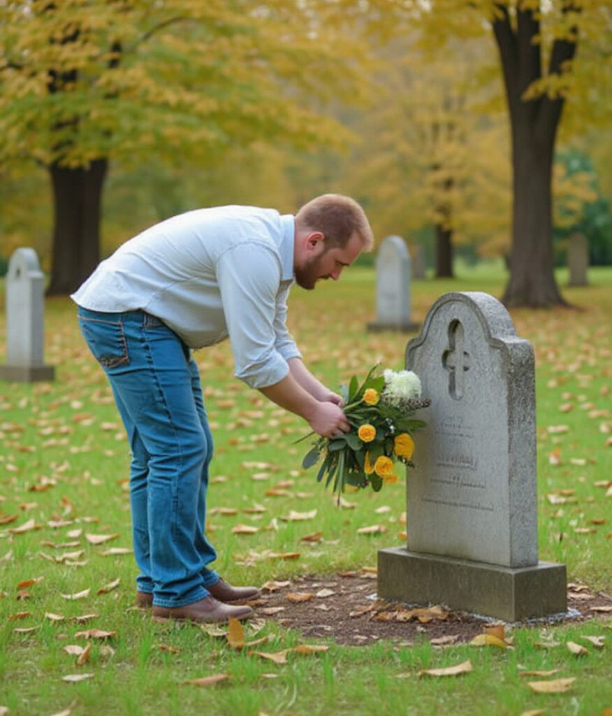 The man kneeling by Owen’s grave, carefully placing pink carnations, looked so familiar. The broad shoulders, the slight tilt of his head… I’d seen it countless times across our dinner table.