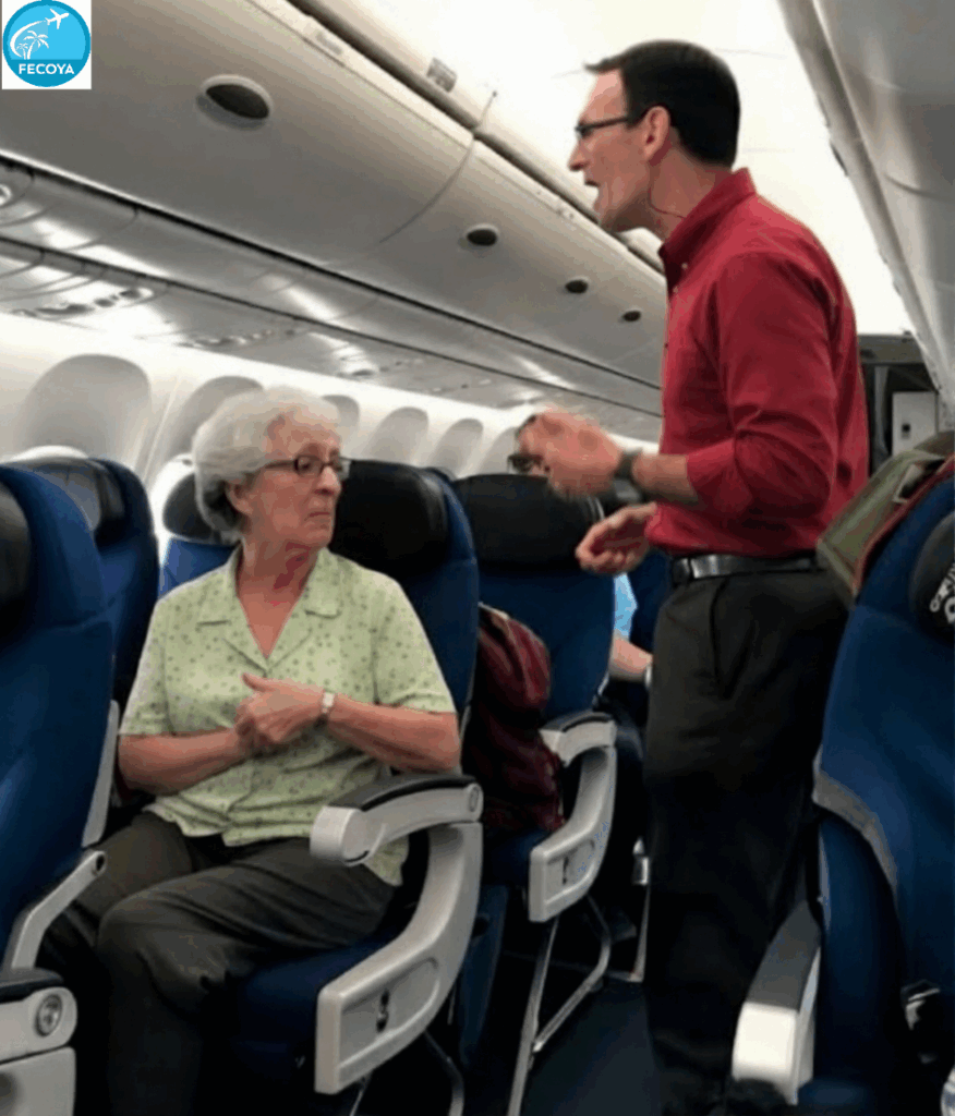 “Sir, this is her seat. We can’t do anything about it,” the stewardess said gently, trying to persuade the businessman who had a scowl on his face.