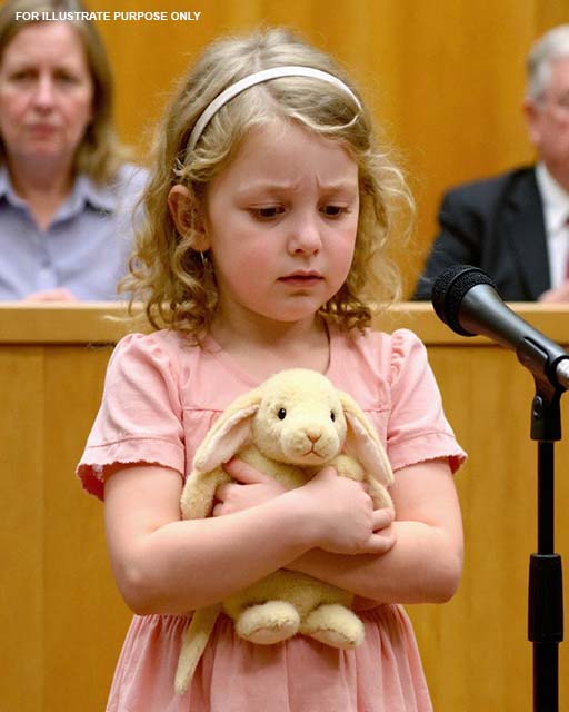 Moments later, a bailiff escorted Chloe into the room. She clutched Mr. Whiskers tightly, wearing her yellow dress with tiny white daisies and her favorite sneakers that lit up with every step.
