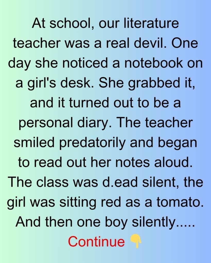 At school, our literature teacher was a real devil. One day she noticed a notebook on a girl’s desk.