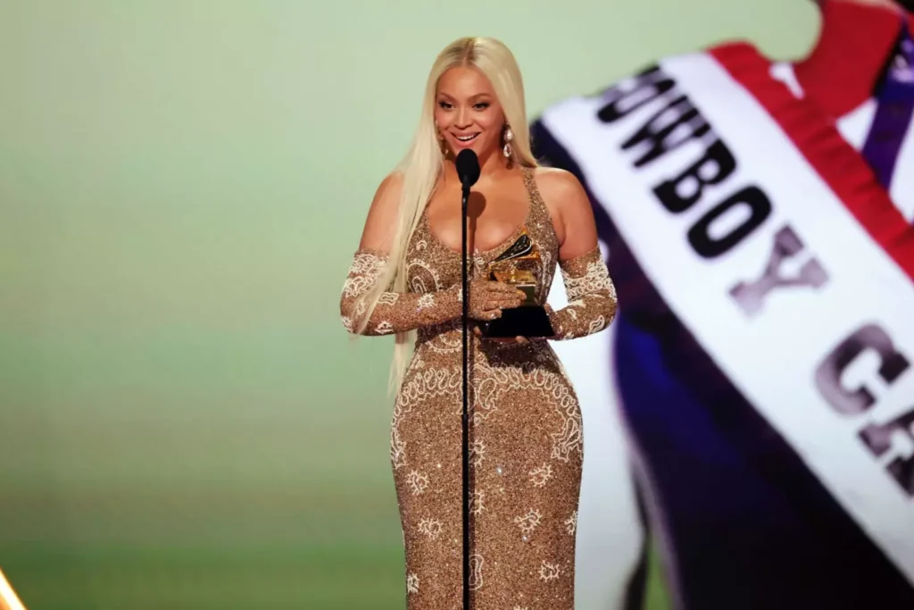 Bey accepting her Best Country Album Grammy Award earlier this evening (Kevin Winter/Getty Images for The Recording Academy)