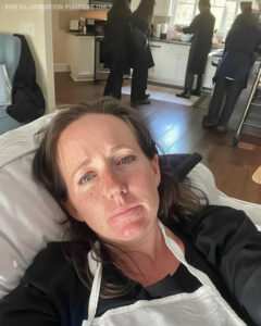When Celine can eventually sit up, it takes her around ten minutes. She reveals her discomfort over what’s happening to her while wrapping a blanket around herself.