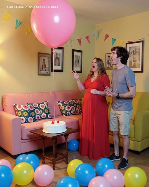 The day of the reveal arrived bright and sunny. Our backyard was decorated with pastel streamers, tables lined with food, and a massive balloon arch framing the cake table. Everyone buzzed with excitement.