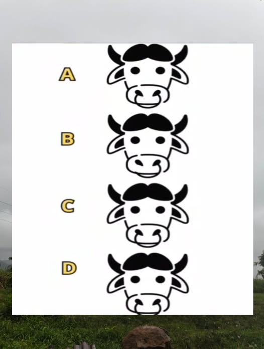 If you look closely, Cow C’s right ear (left as you look) is missing the small inner line/detail that the others have, so its ear shape/detailing is different.