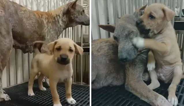 After recovering, she gladly reunited with her puppies in a supportive, secure place.