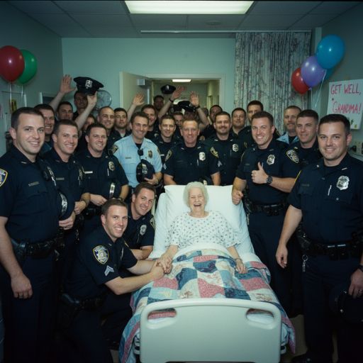 Not just one or two. I’m talking dozens. Full uniform, badges shining, hats off, grinning like kids at Christmas. Grandma? She was in the hospital bed holding court like a queen, cracking jokes and waving like she was at a parade.
