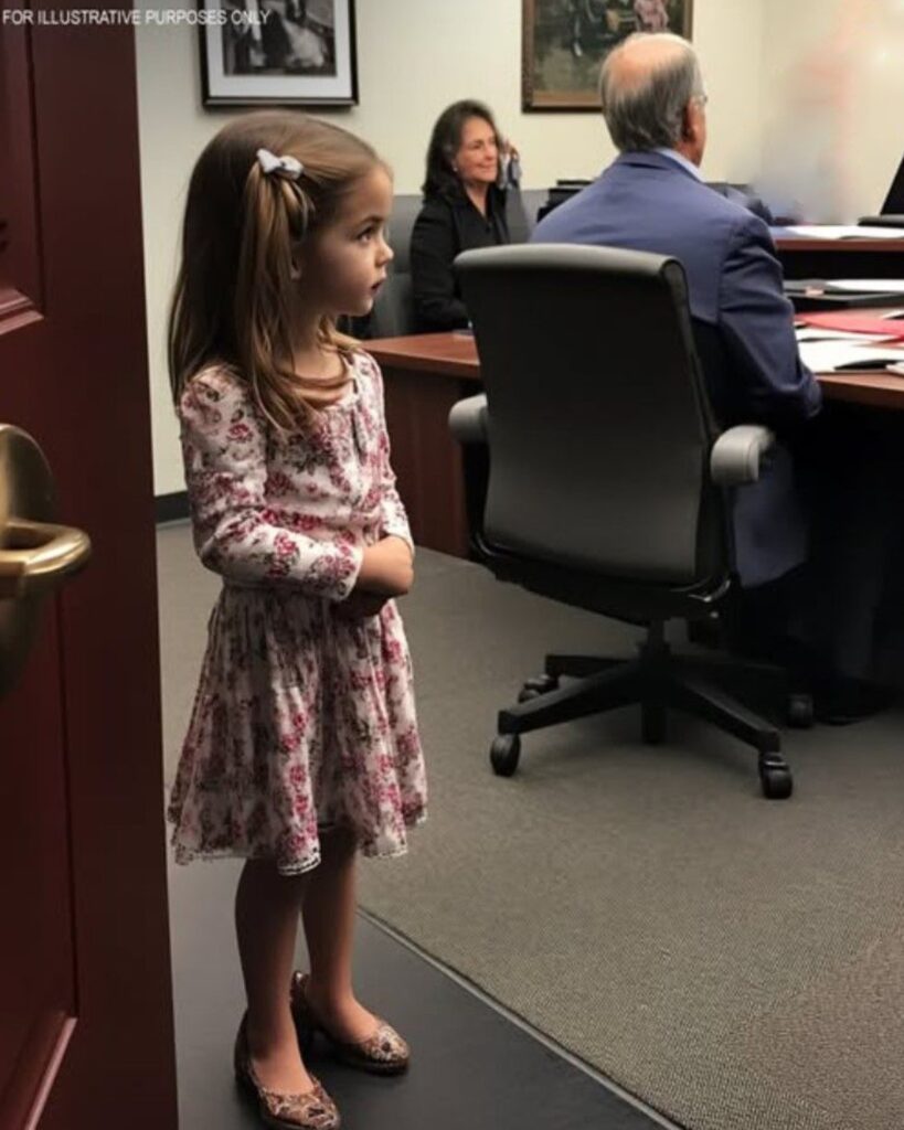The room was filled with uneasy silence as Mr. Alaric shuffled his papers, the sound of crisp pages echoing in the tense atmosphere. Mr. Lewis’ children and grandchildren sat impatiently, their eyes darting from each other to the little girl standing quietly beside the lawyer.