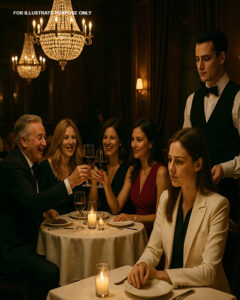 Derek’s employer and colleagues dined that weekend. As they entered, I bowed low in full costume.
