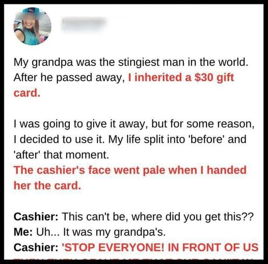 After my grandfather passed away, I received a seemingly ordinary $30 gift card from him. Instead of just giving it away, I had a strong desire to use it for myself. Little did I know, this simple decision would reshape the entire course of my life.