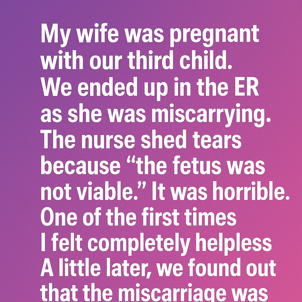 My wife was pregnant with our third child. We ended up in the ER as she began to miscarry. The nurse shed tears with us, explaining gently that the pregnancy wasn’t viable. It was one of the most painful nights of our lives — and one of the first times I felt completely helpless, unable to protect the person I loved most.