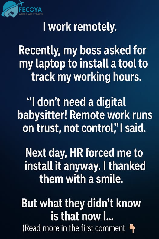 Recently, my boss asked for my laptop to install a tool to track my working hours. “I don’t need a digital babysitter! Remote work runs on trust, not control,” I said. Next day, HR forced me to install it anyway. I thanked them with a smile. But what they didn’t know is that now I…