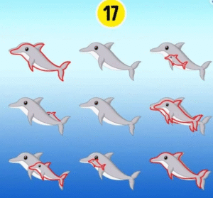Optical illusions and brain teasers are a fun way to challenge our minds. This dolphin brain teaser hides 17 dolphins in one image—some easy to spot, others cleverly camouflaged within the shapes of other dolphins. The first row has 5, the second and third rows each have 6 dolphins.