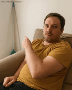 John was seated on the couch, looking at the TV indifferently, as though nothing had happened.