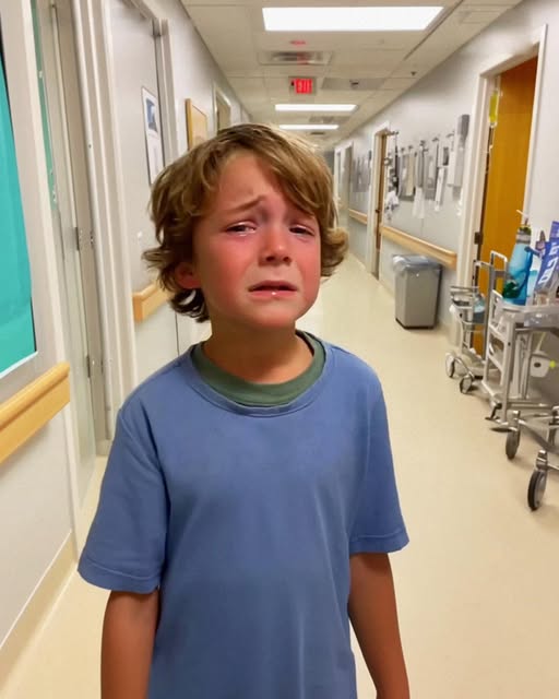 He was a little boy, no more than eight, sitting all alone, curled up on the cold floor near the double doors. The boy was clutching a worn-out backpack so tightly that the straps dug into his small arms. His eyes were red, his cheeks blotchy, and his body shook with each quiet sob.