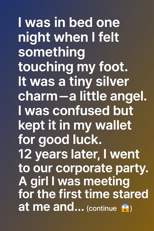 I was in bed one night when I felt something touching my foot. It was a tiny silver charm — a little angel. I was confused but decided to keep it, slipping it into my wallet for good luck. Over the years, that tiny charm became my quiet companion through college exams, job interviews, and even moments of heartbreak. Somehow, whenever I faced challenges, having it with me brought a strange sense of calm, like it was silently guiding me.