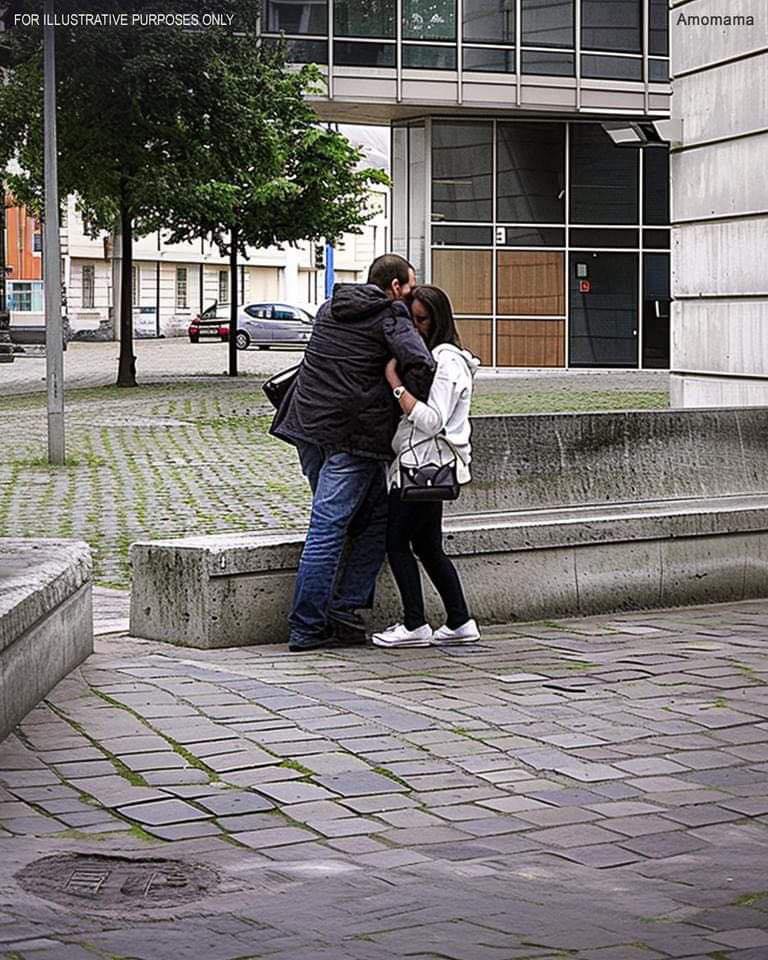 As she drove right after him, her heart sank when she realized he stopped at the hotel. There, he met with a gorgeous young lady. They kissed and laughed.
