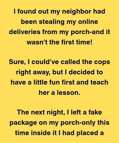 The next night, I left a fake package on my porch—only this time inside it I had placed a note that read, “Smile, you’re on camera!” along with a tiny Bluetooth speaker that played a loud barking dog sound every time someone moved the box.