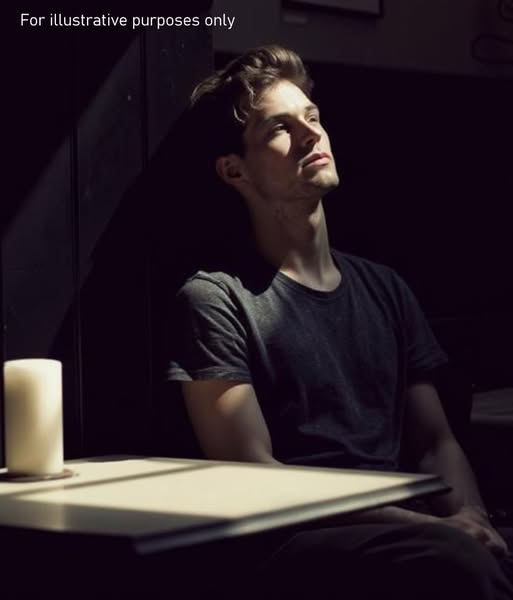 When he glanced at his face, it seemed as if he hadn’t slept for days. Very light. There are blue half-moons behind the eyes, which are sunken in.