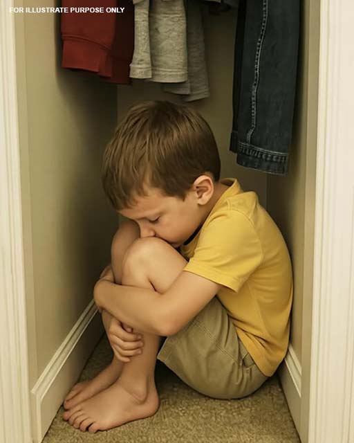 I ripped open the closet in the hallway and saw him curled up, holding his dinosaur plush to his breast as if it were a lifeline. Fear had caused his cheeks to become blotchy, and his legs were tucked in. Getting down on my knees, I drew him into my arms and held him there.