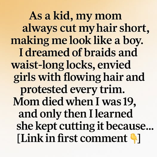 As a kid, my mom always cut my hair short, making me look like a boy. I dreamed of long braids and flowing styles, wishing I could look like the other girls around me. Every trim felt like losing a small piece of the identity I wanted to build. I never understood why she insisted on the same haircut for years. When she passed away when I was nineteen, I finally learned the truth she never shared.