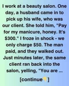 The room lost its air. Dave had no color left in his face, and his eyes were wide with terror. “No, that’s not it,” she said. It’s not true.