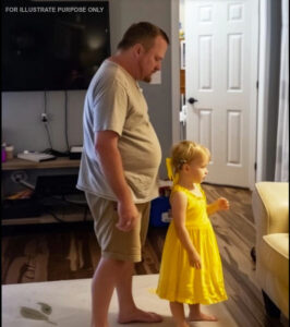He stepped into the living room and stopped, his face softening slightly at the sight of our daughter.