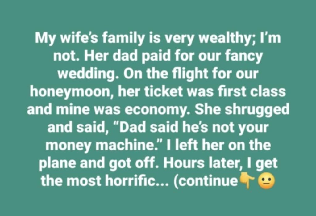 She shrugged and said, “This sucks baby, but Dad says he’s not your money machine.” Furious, I left her on the plane. Hours later, I get the most horrific call from her dad. I couldn’t believe it when he said, “I gave you a dream wedding and a dream honeymoon and didn’t ask you for a dime. Is this how you treat my daughter?