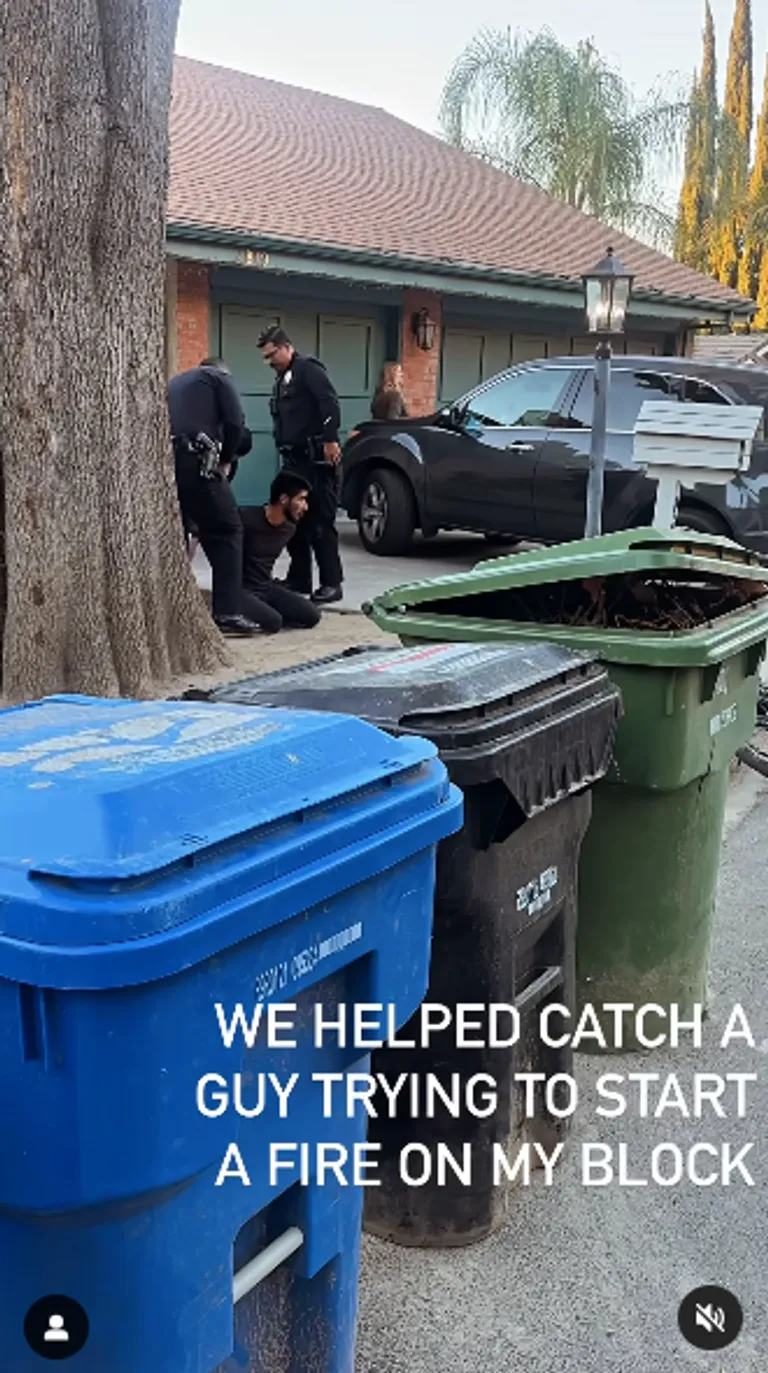 While speaking to KTLA 5 about what happened, Grinshpun revealed, “We were sitting in the backyard and suddenly, we hear a car come to a screeching halt and the guy is running out saying, ‘Stop! Drop what you’re holding! Neighbors, he’s trying to start a fire! Call 911!'”
