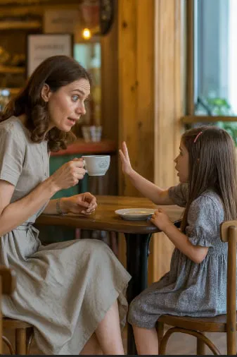 But today something prompted her to accept. Perhaps yesterday’s conversation with Sophie, or simply the tiredness of being alone. “Actually, I have an hour before I have to pick up my daughter from music school.”