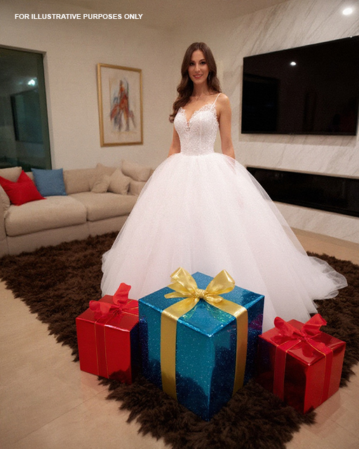 Two nights later, Tara and Jason returned from their honeymoon weekend. On their front porch sat a large, beautifully wrapped box with a card that read, “A symbol of transformation and love. Open indoors for best effect. —S.”
