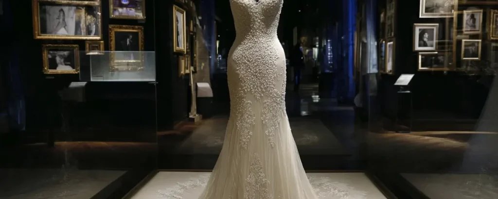 She arrived in heels that sank slightly into the soft grass, holding a tiny white clutch, and wearing that dress, the tight, ivory, mermaid-style gown with the beaded bodice and dramatic train.