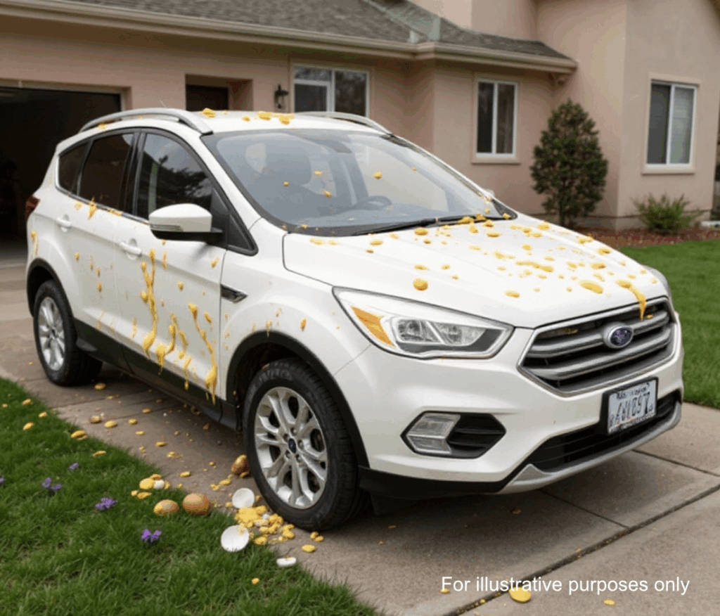 Shell fragments gleamed in the early sun, yolk dripping in thick, filthy streaks down the windshield, grille, and doors. The eggs were hardening on the car’s paint in the rising heat.