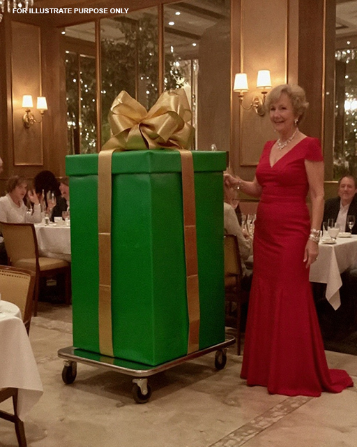 After dessert, I excused myself and returned wheeling in a large decorated box.