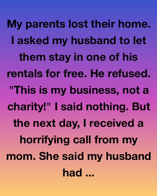 I said nothing. But the next day, I received a horrifying call from my mom. She said my husband had come by the rental and yelled at them to leave the property immediately, even though I’d told her it was fine to stay temporarily.
