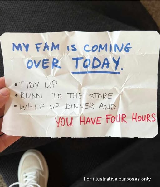 “Hey, sweetheart,” he said, barely looking at me as he cleared his throat. “My family’s coming over today. Just a small thing. You’ve got, like… four hours.”