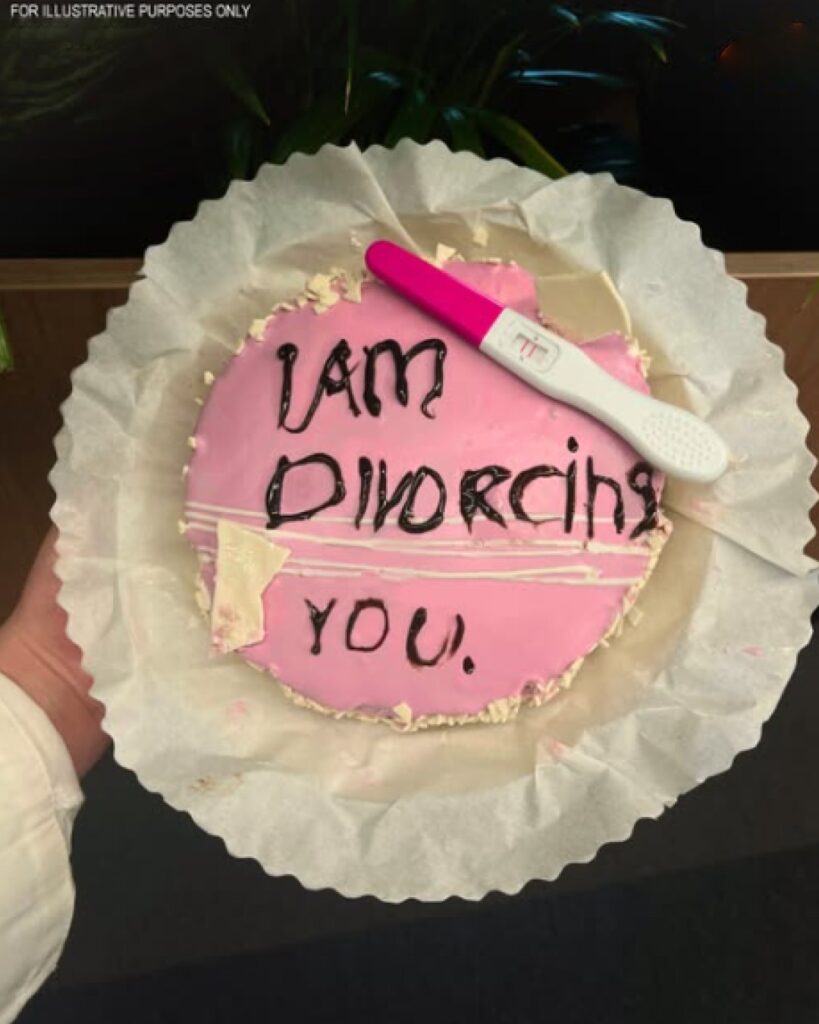 But I was late, and I had forgotten. Now, this? The cake… this was Jake’s response? Divorce. A cake with a slap-in-the-face message.