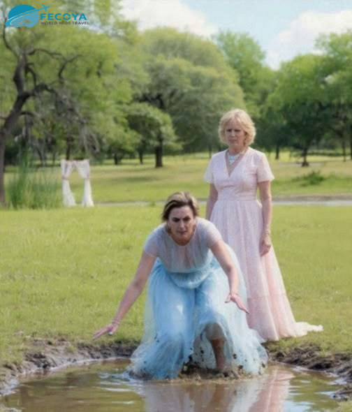 The light blue dress was instantly covered in thick, dark mud. Guests gasped. Marie dropped her camera. Alma just stood there, hand over her mouth like she was shocked.