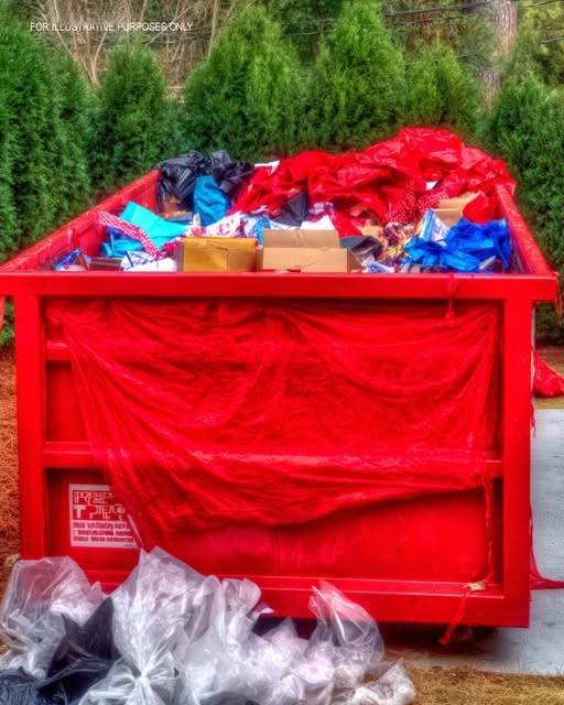 To my surprise, when I returned home from my honeymoon, I discovered a bright red dumpster in my backyard. Inside, it was loaded with ripped wrapping paper, flattened boxes, and crumpled gift bags from our wedding, which had only occurred a week before.