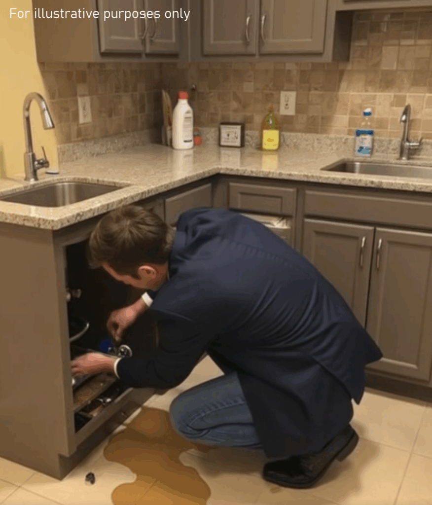 There was a pipe that had burst under the kitchen sink, and water was pouring out everywhere. The flooring, chairs, and what appeared to be an expensive rug were all soaked. A number of guests stumbled and yelled. The cake was shattered by a woman who was wearing white pants. A man with a bald head cried, “My shoes!” “Are you aware of the effects that water has on French leather?”