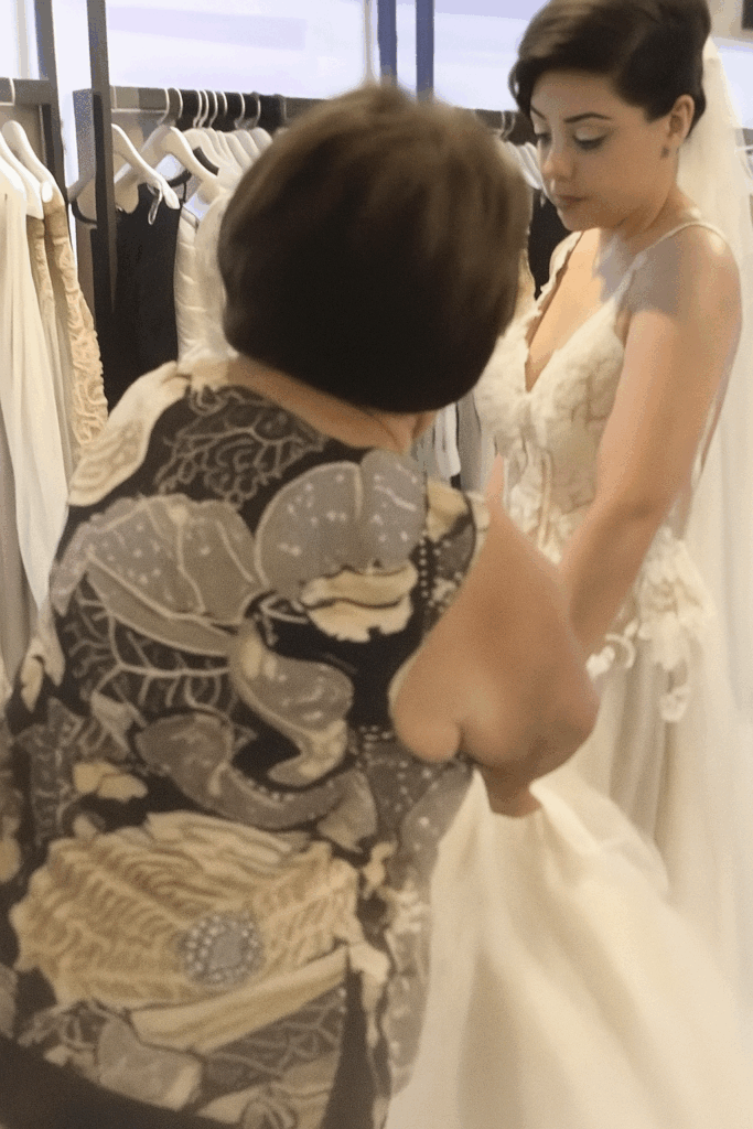 Bridal consultant interlocked hands. Oh honey, that’s it. You look gorgeous.”