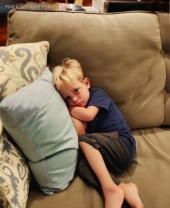 The house was peaceful for a few days at a time. The couch was returned to its original location. While watching cartoons and nibbling on cereal, the children were splayed out across it.