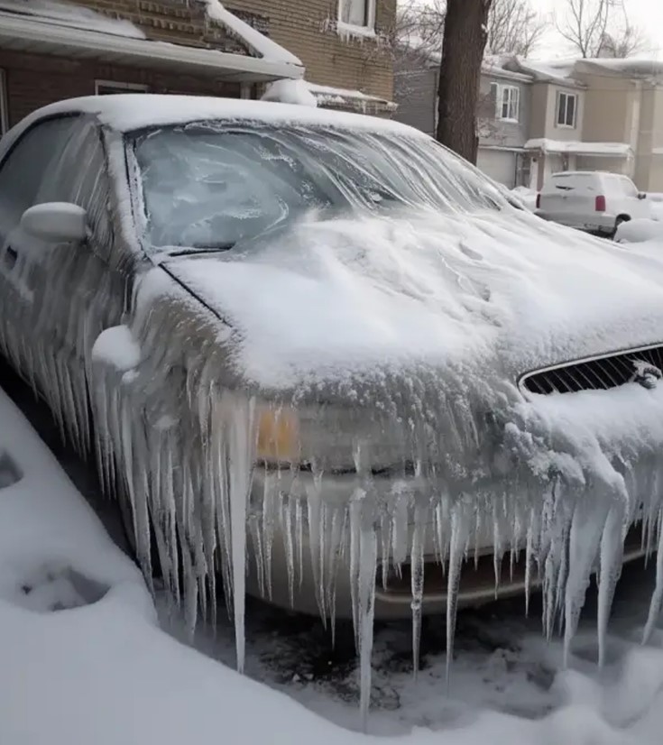 My car was completely encased in ice; thick, clear ice that looked nothing like natural frost.