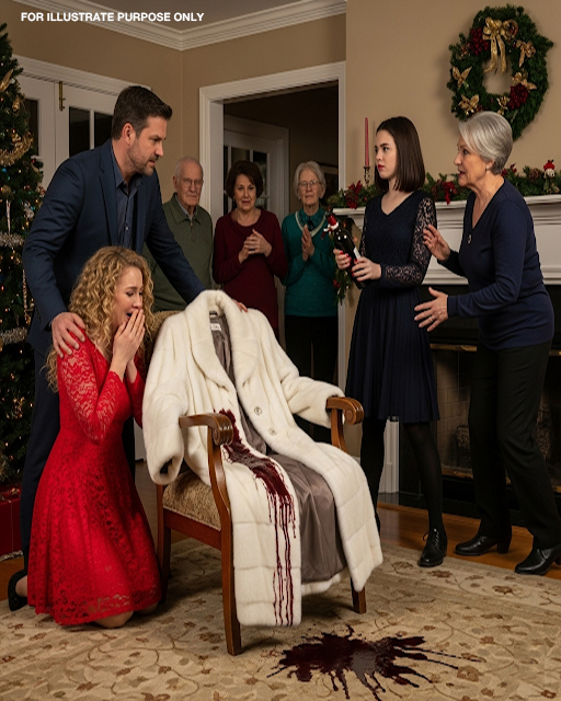 When we returned, gasps filled the room. My heart plummeted as I saw my coat my precious, irreplaceable coat lying in a puddle of red wine. The glass bottle had shattered beside it, soaking the fur. Ava stood nearby, her face flushed, her hand still gripping the neck of the broken bottle.