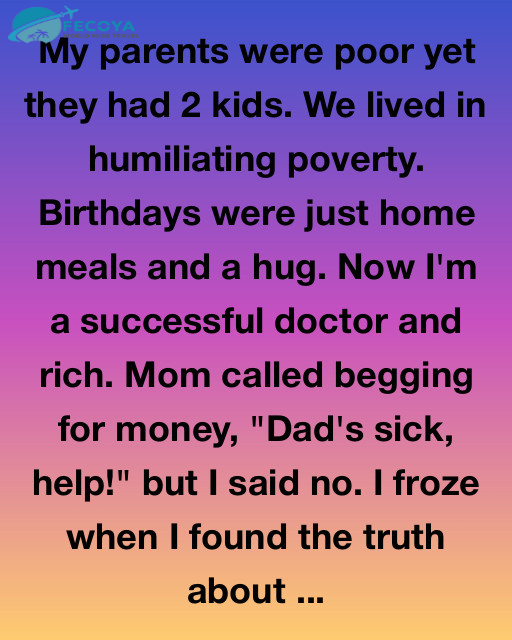 My parents were poor yet they had two kids. We lived in humiliating poverty. Birthdays were just home meals and a hug. Now I’m a successful doctor and rich. Mom called begging for money, “Dad’s sick, help!” but I said no. I froze when I found the truth about everything.