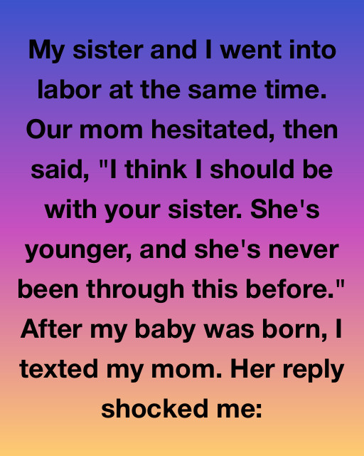 My sister and I went into labor at the same time. Our mom hesitated, then said, “I think I should be with your sister. She’s younger, and she’s never been through this before.” After my baby was born, I texted my mom. Her reply shocked me: “I’m sorry I missed it. But things didn’t go how I thought they would.”
