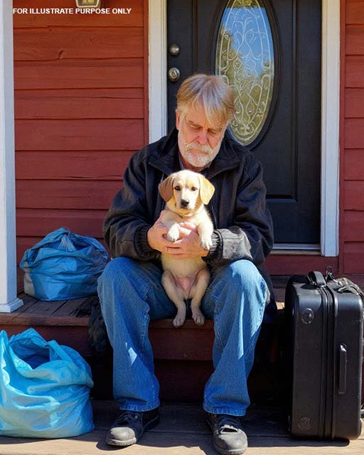Then my eyes dropped to the other details: the battered suitcase by his feet, two trash bags stuffed with clothes, and the unmistakable look of defeat on his 82-year-old face.